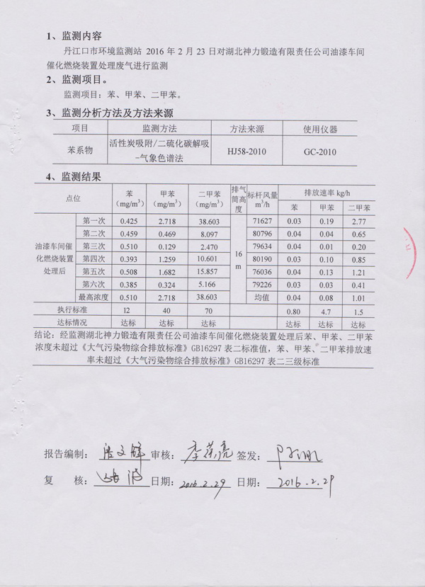 湖北神力锻造有限责任公司废气检测报告